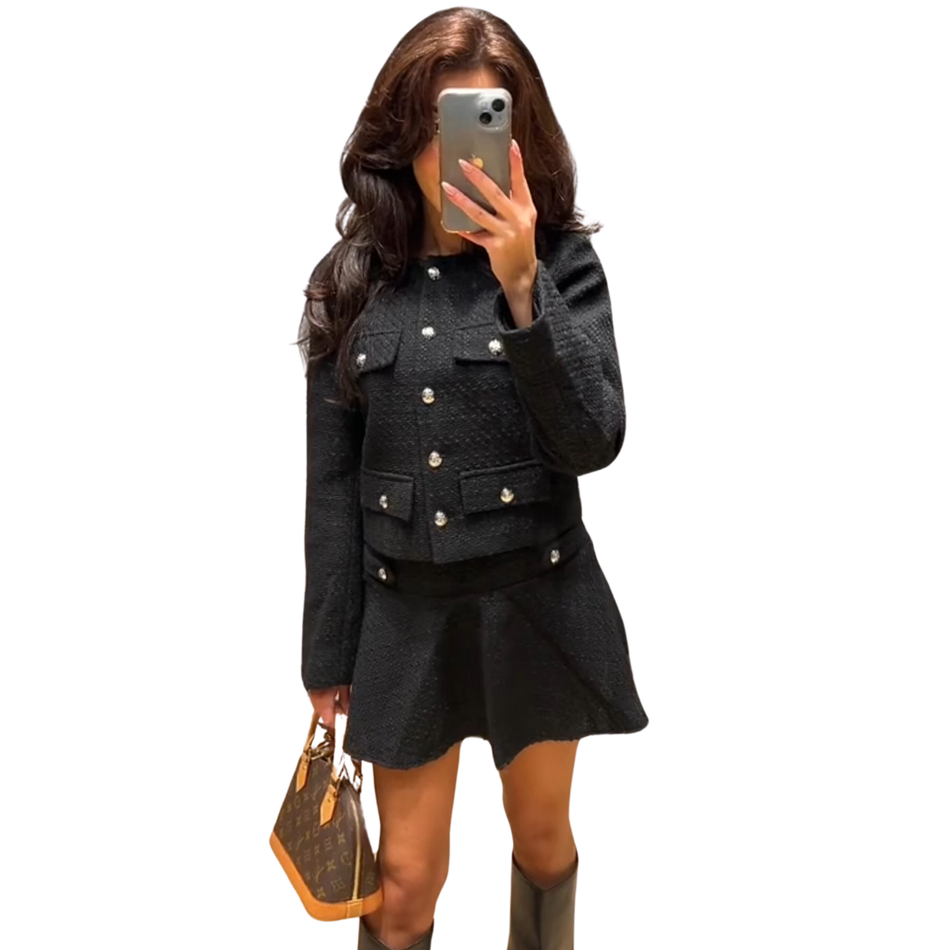 Ervaar tijdloze mode met de Isabelle Mohair Old Money Set. Deze prachtige set, bestaande uit een stijlvol rokje en elegante top, is gemaakt van een luxueuze mohairmix die heerlijk zacht aanvoelt op de huid – geen kriebel, alleen puur comfort. Ontworpen om jouw stijl naar een hoger niveau te tillen, combineert deze set moeiteloos verfijning met een warme, premium uitstraling.