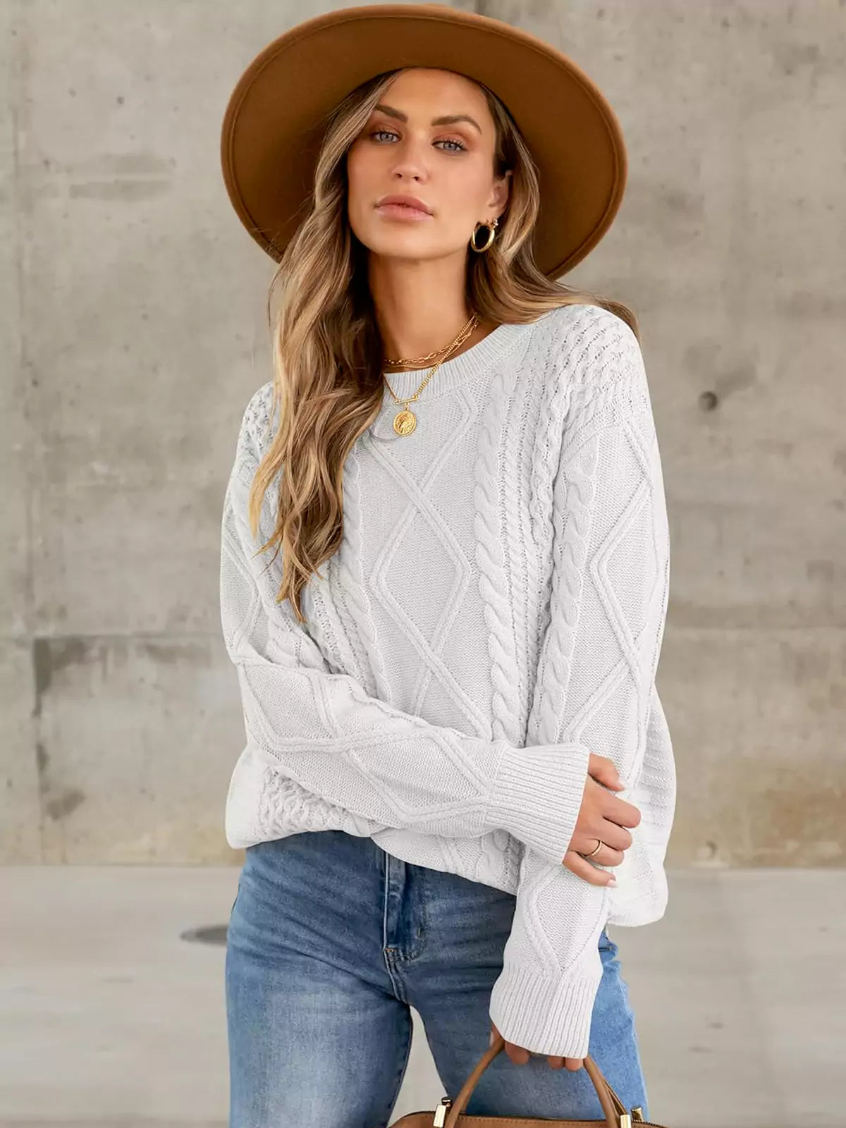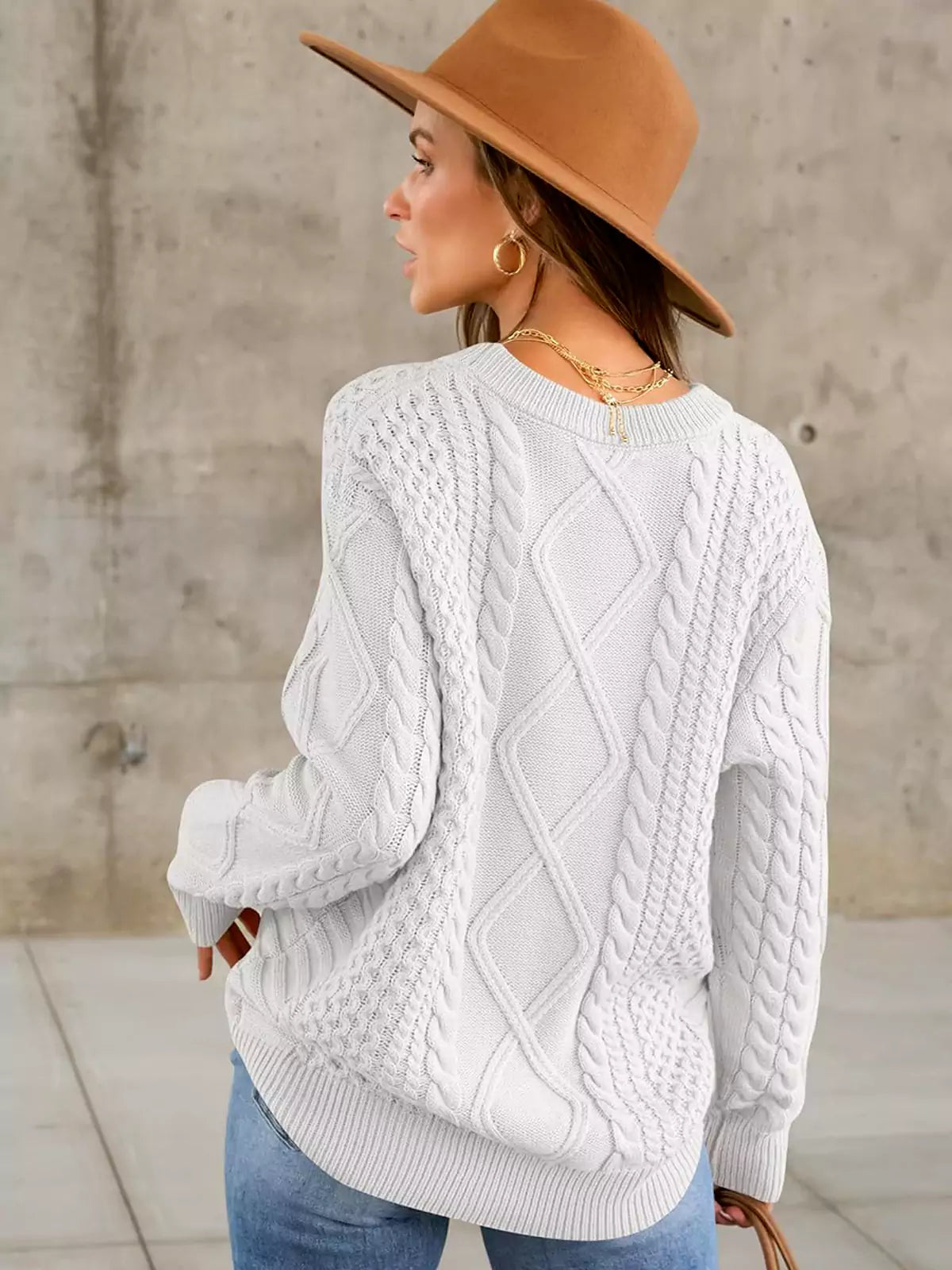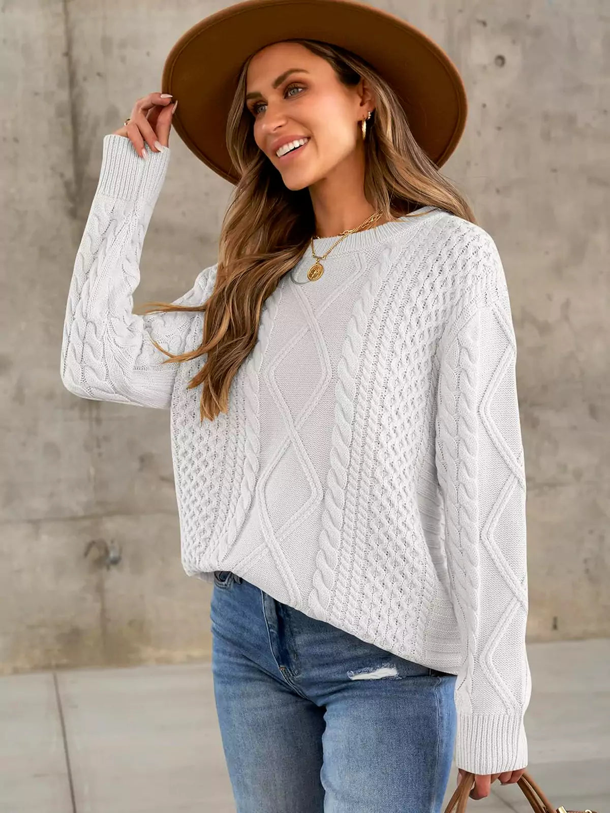 ·    Klassieke ronde hals met lange mouwen en een tijdloos kabelgebreid ontwerp.